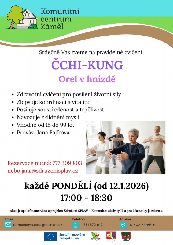 Zveme Vás na pravidelné cvičení Čchi-kung. Sestavou Orel v hnízdě provází Jana Fajfrová. Je potřeba se předem přihlásit.
