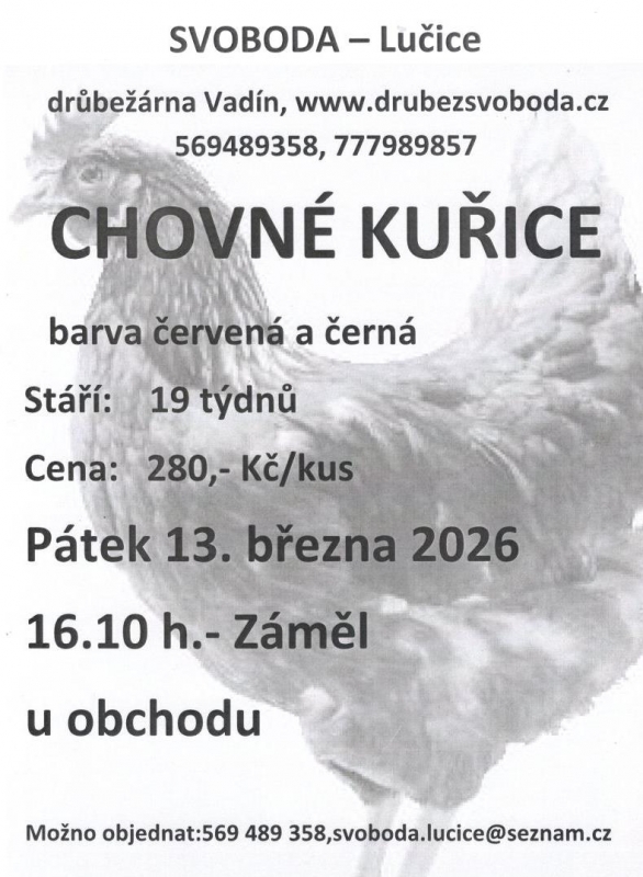 Chovné kuřice v patek 16:10 hod. u obchodu