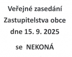 Veřejné zasedání ZO dne 15.9.2025 se NEKONA