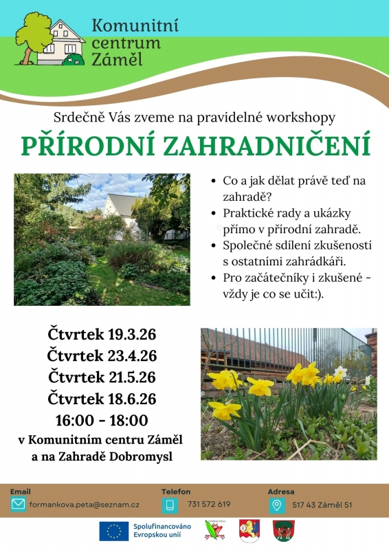 Přírodní zahradničení - pravidelné workshopy (19.3., 23.4., 29.5., 18.6.26 )